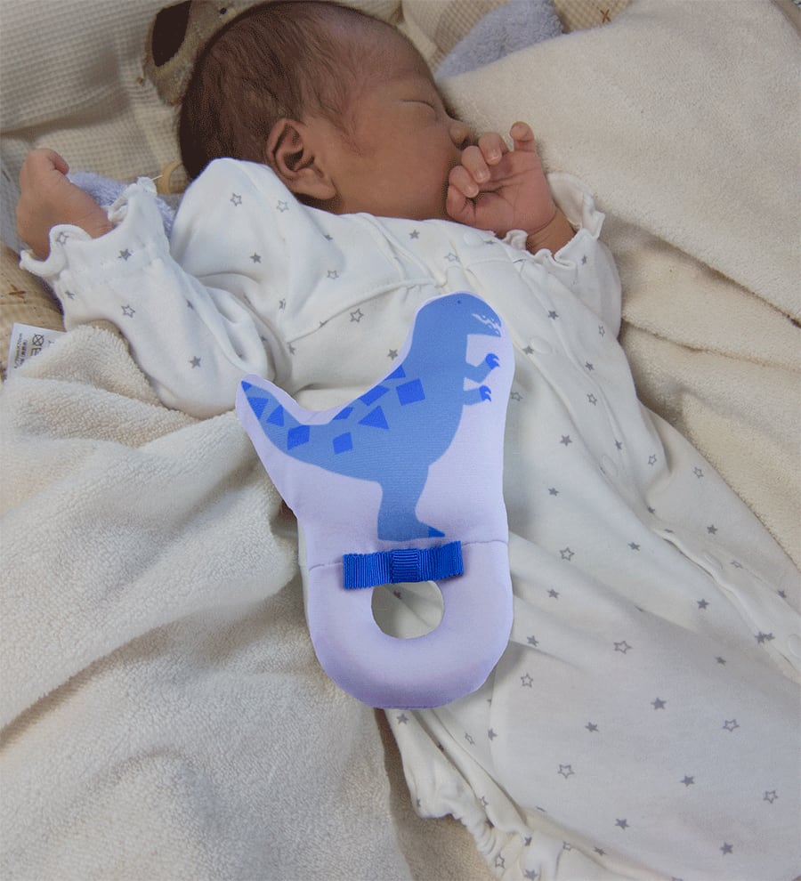 音の出る知育玩具、可愛い恐竜キャラクターのラトル(ガラガラ)です。